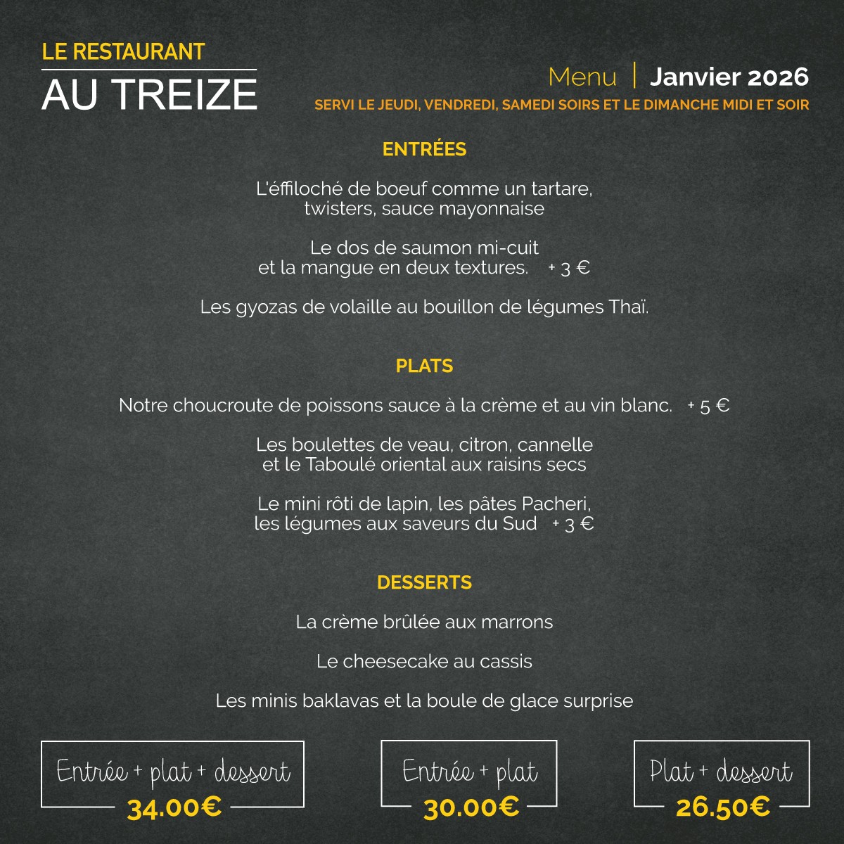 Ouverture : Jeudi, vendredi et samedi soir, dimanche midi et soir.