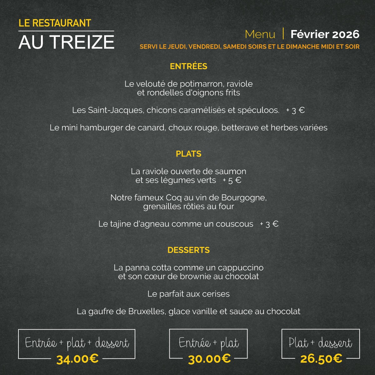 Ouverture : Jeudi, vendredi et samedi soir, dimanche midi et soir.